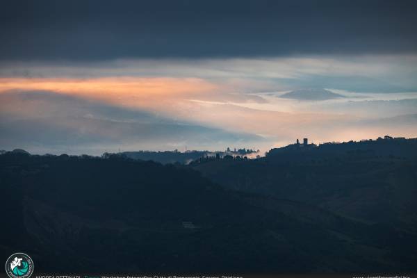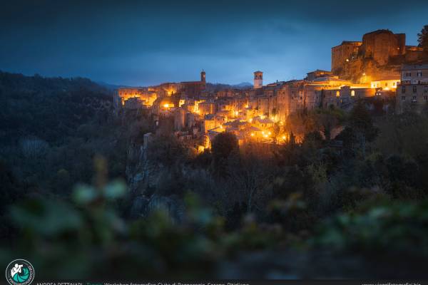 Potremo ammirarlo da più punti di vista panoramici, quindi prima del tramonto ci recheremo di fronte al paese raggiungendo a piedi, attraverso un bosco (dove sono presenti curiose incisioni Etrusche), il punto di vista.