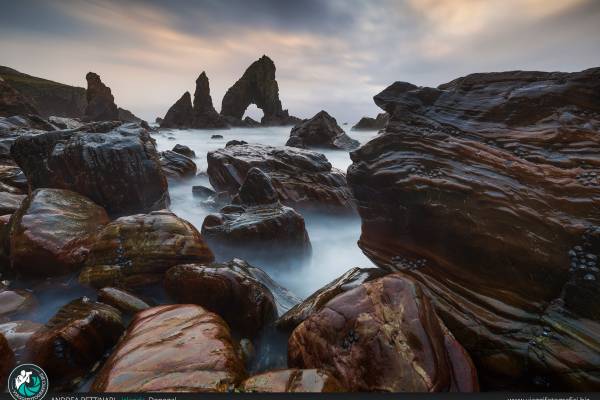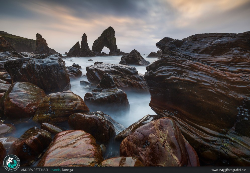 Per l’alba sceglieremo la location che fino ad ora non ci ha soddisfatto dal punto di vista del meteo e avremo dunque una possibilità in più per portare a casa scatti interessanti del luogo scelto. Dopo la revisione scatti ci sposteremo ad ovest, per raggiungere il Crohy Arch per il tramonto. Uno scenico arco nascosto dalla scogliera, dove, con il favore della bassa marea, potremo avventurarci tra gli scogli, realizzando scatti molto interessanti. Il passaggio per raggiungere la location è un po’ impervio e per chi non se la sentisse, lo scatto dall’alto è, in ogni caso d'impatto.