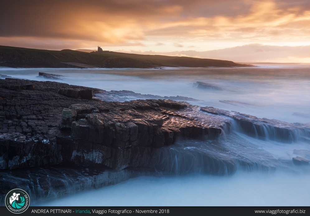 Pronti in prima linea per la nostra sessione all’alba. La location sarà sempre il Classiebaw Castle, ma da un punto più ribassato, radente la scogliera. Con un po’ di fortuna, la calda luce laterale illuminerà il castello al sorgere del sole.