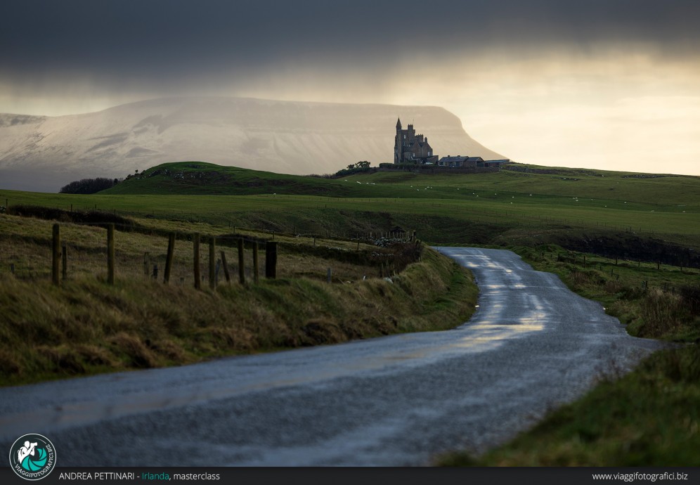Una volta rientrati, prepareremo i bagagli e, dopo queste intense giornate in Donegal ci sposteremo nella vicina contea di Sligo per continuare il viaggio esplorando altre incredibili location. Dedicheremo del tempo ad un tour fotografico presso la zona montuosa della contea, dove vedremo montagne dalle forme curiose e deliziosi laghetti all’interno delle vallate. Infine ci dirigeremo al Classiebaw Castle per il tramonto. Lo immortaleremo da un punto strategico, grazie al quale riusciremo a vedere l'imponente catena montuosa del Benbulben sullo sfondo, con le sue forme curiose.