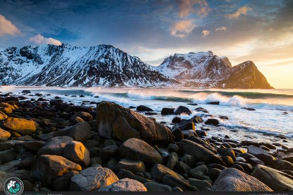Dopo la colazione in hotel, inizieremo il tour delle isole Lofoten. Faremo il check-in nei nostri rorbuer, tipiche casette dei pescatori norvegesi, e inizieremo l'esplorazione dell'area di Leknes, con le sue spiagge caraibiche: Uttakleiv, Haukland e Unstad. La nostra sessione fotografica al tramonto la faremo a Uttakleiv: una spiaggia davvero fotogenica, ricca di tantissimi spunti fotografici, tra cui il famoso "Dragon's Eye". Dopo cena, tenteremo l'avvistamento dell'aurora boreale alla spiaggia di Haukland, un'altra location incredibile, che dista solo 15 minuti dai nostri alloggi.