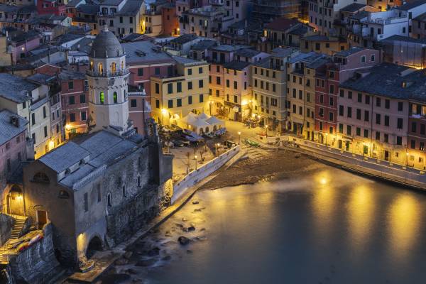 Per il tramonto e l'ora blu, torneremo nella bella Vernazza, per fotografare il borgo da un altro punto di vista panoramico, presso il grazioso porticciolo.