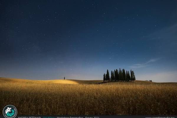 Sveglia di primissima mattina per immortalare il momento di luce migliore in Val d’Orcia, ovvero l’alba. Le prime luci del giorno sapranno risvegliarvi al meglio, colorando e disegnando il paesaggio attorno l’iconico Podere Belvedere, una tra le location più gettonate e famose tra i fotografi. Durante il ritorno potremo immortalare da lontano la piccola chiesa della Madonna di Vitaleta e dedicarci infine alla meritata colazione. Dopo un momento di relax ci ritroveremo in tarda mattinata per una revisione scatti collettiva, momento di importanza fondamentale per comprendere i propri pregi ed errori, oltre che confrontarsi con il gruppo ed apprendere preziosi trucchi per migliorare la post produzione. Dopo un buon pranzo dedicheremo il pomeriggio alla visita delle colline e campi circostanti, oltre la possibilità di visitare anche paesini come Bagno Vignoni, Bagni San Filippo e San Quirico d’Orcia (l’ordine di visita verrà deciso al momento dal docente in base alle condizioni meteo e di luce). Termineremo la giornata con un tramonto tra le colline e l'immancabile sessione notturna.