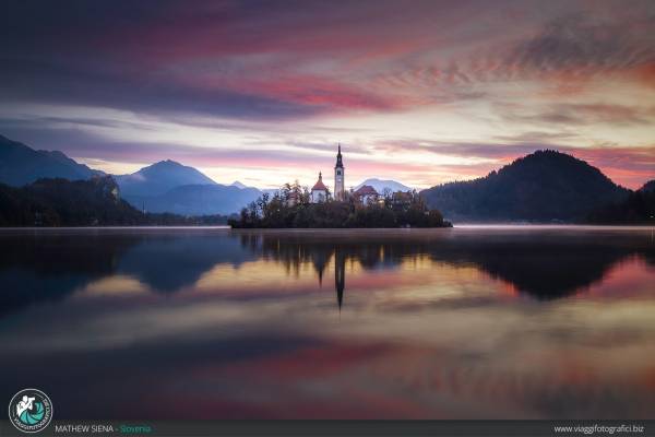 Per l’ultima alba torneremo al lago di Bled, per fotografare la sua atmosfera incantata alle prime luci del mattino.