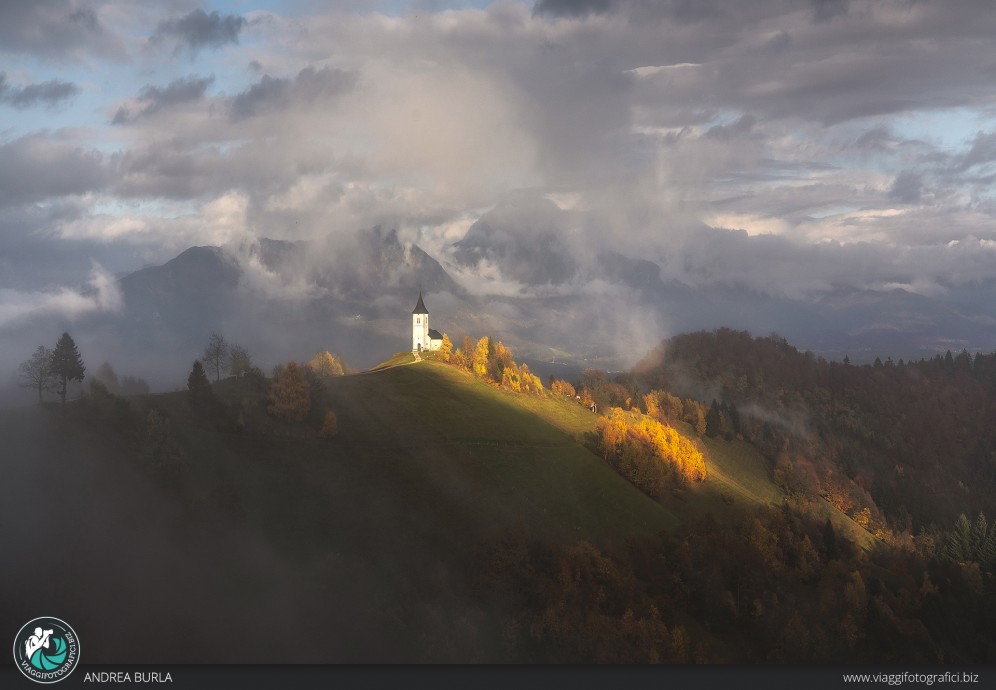 La sveglia, in autunno, per le nostre sessioni all’alba, è decisamente più clemente e, questa seconda mattina, la dedicheremo alle meravigliose atmosfere che circondano la stupenda chiesa di Sveti Tomaž. Posta sulla cima di una campagna slovena, se saremo fortunati, riusciremo a fotografarla con una luce calda e radente, impreziosita dal foliage autunnale.